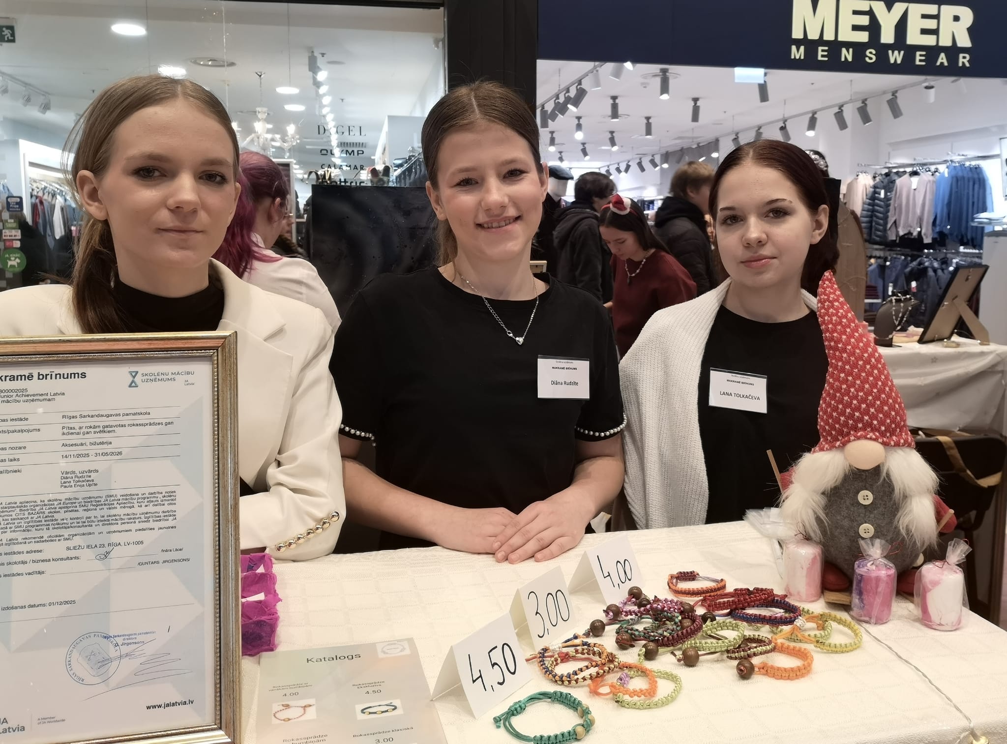 Rīgas Sarkandaugavas pamatskola arī šogad pirms Ziemassvētkiem ņēma dalību Junior Achievement Latvia rīkotajā skolēnu mācību uzņēmumu pasākumā – ikgadējā ziemas kas notika šodien, 6. decembrī tirdzniecības centrā Domina Shopping. Mūsu skolu skolotājas Ināras Lāces vadībā pārstāvēja 7.klases meitenes Diāna, Lana un Paula.